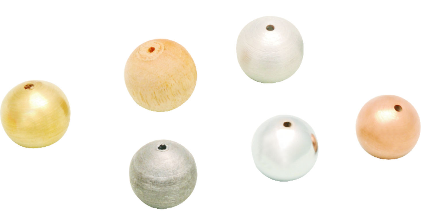 6 balls, 25mm diameter. Each ball drilled with a 3mm diameter hole. Wood, aluminium, steel, copper, brass and plastic.