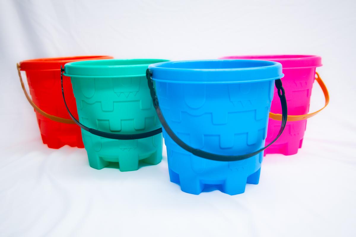 Summertime Beach Bucket: castle shaped bucket in assorted colours.