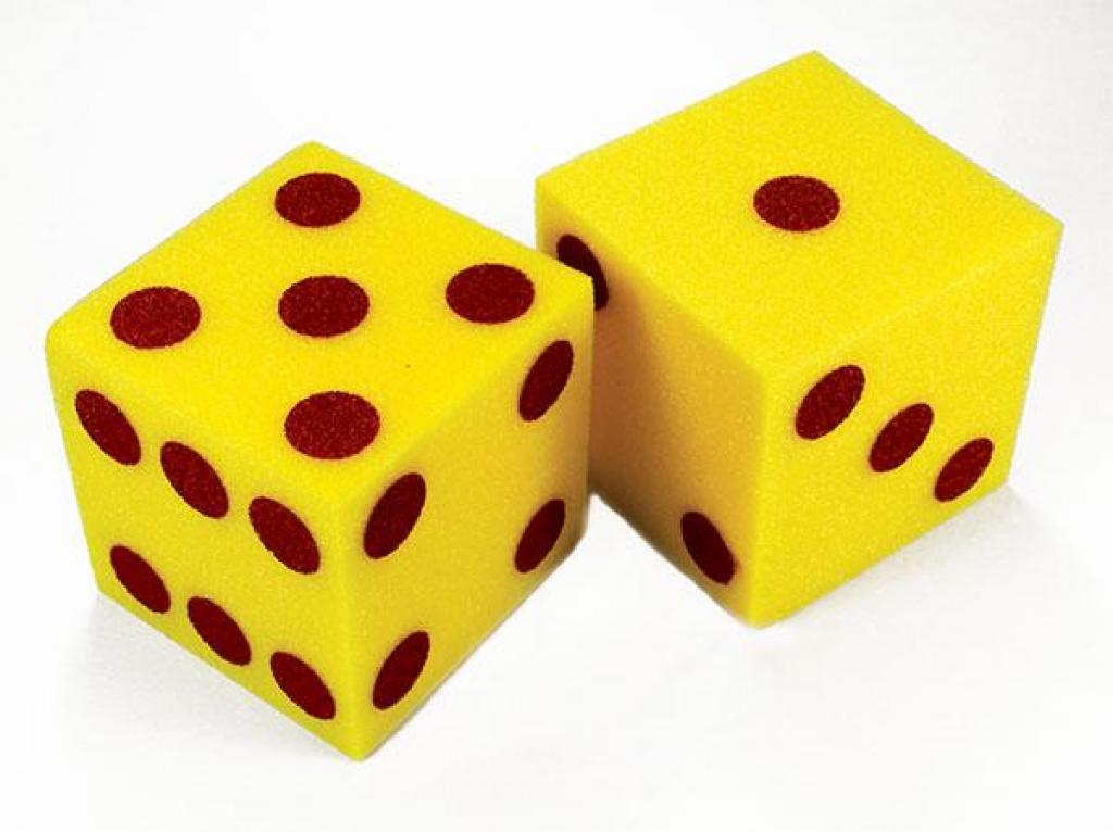 12.5cm x 12.5cm giant soft foam dot dice, supplied in a pack of 2.